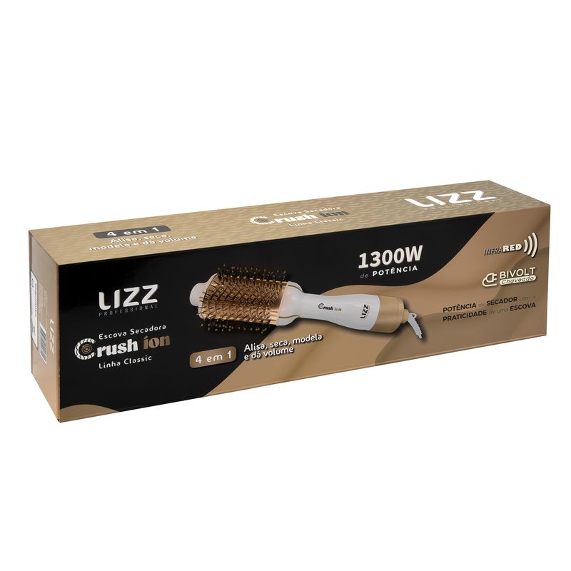 Escova Secadora Crush Íon 1300W Bivolt - Lizz Pro